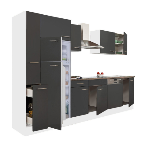 Yorki 310 konyhabútor felülfagyasztós hűtős kivitelben Yorki 310 konyhablokk fehér korpusz,selyemfényű antracit fronttal. A tökéletes konyha megteremtője! Minőségi hazai gyártású moduláris konyhabútor, mely kielégíti bármely kedves vásárló igényét. Lam