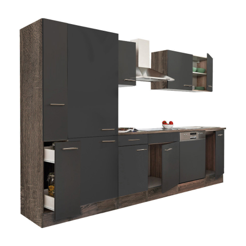 Yorki 310 konyhabútor polcos kivitelben Yorki 310 konyhablokk tögy korpusz,selyemfényű antracit fronttal. A tökéletes konyha megteremtője! Minőségi hazai gyártású moduláris konyhabútor, mely kielégíti bármely kedves vásárló igényét. Laminált 16 mm-es b