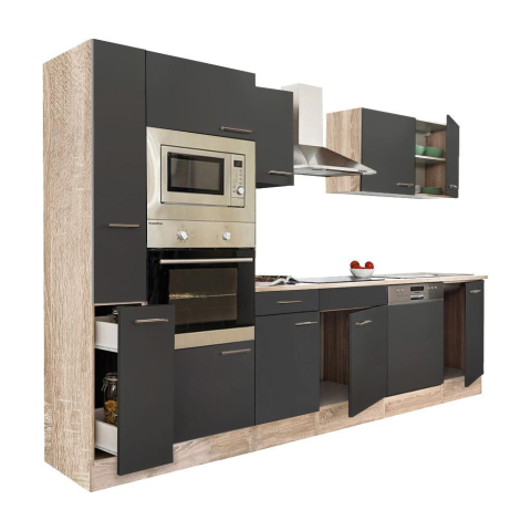 Teljes Leziter Yorki 310 konyhabútor sonoma tölgy korpusz,selyemfényű antracit fronttal termékleírás