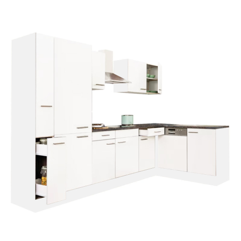Yorki Sarok Konyhablokk - 310 cm, Fehér Selyemfényű Fronttal ✨ A Yorki 310 sarok konyhablokk tökéletes választás, ha modern és praktikus konyhát szeretnél! Ez a hazai gyártású, moduláris konyhabútor fehér korpusszal és selyemfényű fehér fronttal rend...
