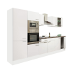 1 kép Leziter Yorki 330 konyhablokk fehér korpusz,selyemfényű fehér fronttal polcos szekrénnyel