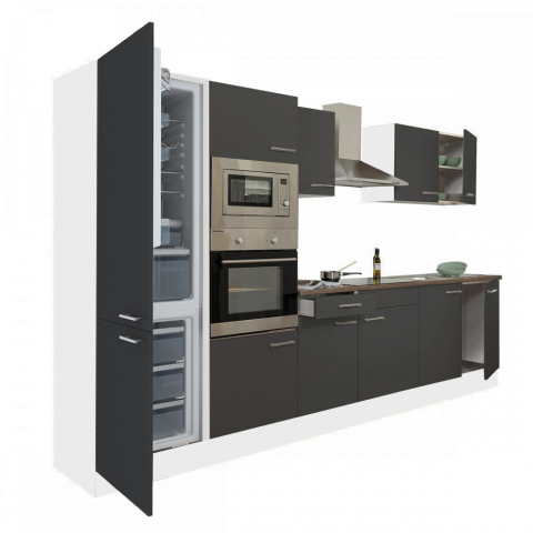 Yorki 330 konyhablokk fehér korpusz,selyemfényű antracit fronttal. A tökéletes konyha megteremtője! Minőségi hazai gyártású moduláris konyhabútor, mely kielégíti bármely kedves vásárló igényét. Laminált 16 mm-es bútorlapból készülő korpusz, fehér szín