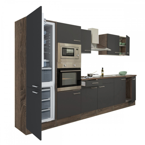 Yorki 330 konyhabútor alulfagyasztós hűtős kivitelben Yorki 330 konyhablokk tögy korpusz,selyemfényű antracit fronttal. A tökéletes konyha megteremtője! Minőségi hazai gyártású moduláris konyhabútor, mely kielégíti bármely kedves vásárló igényét. Lamin