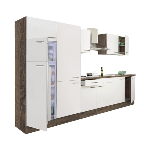 Yorki 330 konyhabútor felülfagyasztós hűtős kivitelben Yorki 330 konyhablokk tögy korpusz,selyemfényű fehér fronttal. A tökéletes konyha megteremtője! Minőségi hazai gyártású moduláris konyhabútor, mely kielégíti bármely kedves vásárló igényét. Laminál