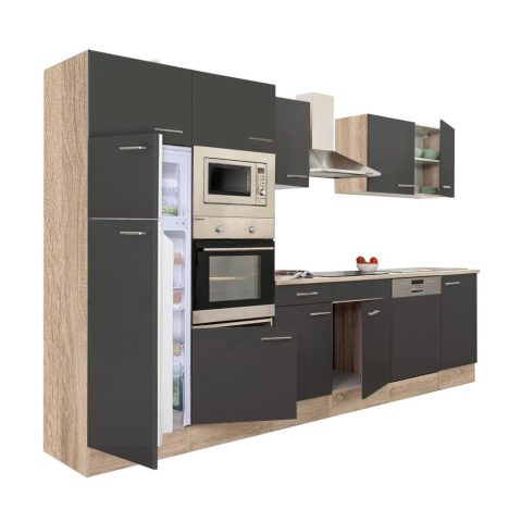 Teljes Leziter Yorki 340 konyhabútor sonoma tölgy korpusz,selyemfényű antracit fronttal termékleírás