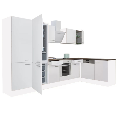Yorki 340 sarok konyhabútor alsó sütős, alulfagyasztós hűtős kivitelben Yorki 340 sarok konyhablokk fehér korpusz,selyemfényű fehér fronttal. A tökéletes konyha megteremtője! Minőségi hazai gyártású moduláris konyhabútor, mely kielégíti bármely kedves