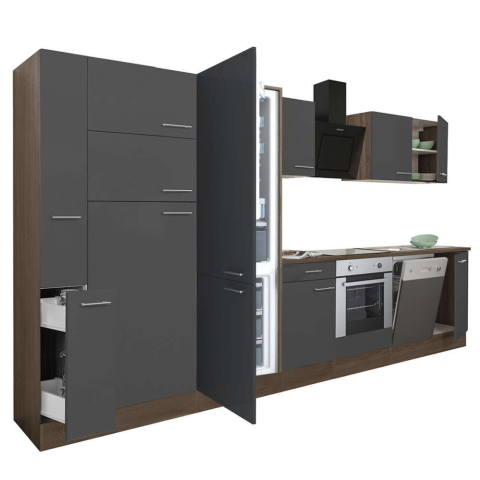 Yorki 370 Konyhabútor: Modern konyha, stílusosan és praktikusan 🏡 Ez a 370 cm széles Yorki konyhabútor tökéletes választás a modern és praktikus konyhát kedvelők számára. Selyemfényű antracit fronttal és yorki tölgy színű korpuszával stílusos megjel...