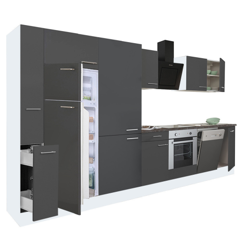 Yorki 370 konyhabútor alsó sütős, felülfagyasztós hűtős kivitelben Yorki 370 konyhablokk fehér korpusz,selyemfényű antracit fronttal. A tökéletes konyha megteremtője! Minőségi hazai gyártású moduláris konyhabútor, mely kielégíti bármely kedves vásárló