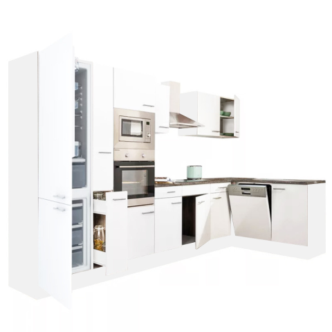 Yorki 370 sarok konyhabútor alulfagyasztós hűtős kivitelben Yorki 370 sarok konyhablokk fehér korpusz,selyemfényű fehér fronttal. A tökéletes konyha megteremtője! Minőségi hazai gyártású moduláris konyhabútor, mely kielégíti bármely kedves vásárló igén