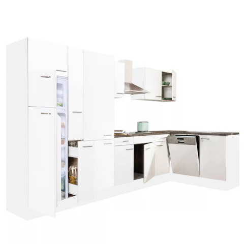 Yorki 370 sarok konyhabútor felülfagyasztós hűtős kivitelben Yorki 370 sarok konyhablokk fehér korpusz,selyemfényű fehér fronttal. A tökéletes konyha megteremtője! Minőségi hazai gyártású moduláris konyhabútor, mely kielégíti bármely kedves vásárló igé