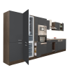 Yorki 430 konyhabútor alulfagyasztós hűtős kivitelben Yorki 430 konyhablokk tögy korpusz,selyemfényű antracit fronttal. A tökéletes konyha megteremtője! Minőségi hazai gyártású moduláris konyhabútor, mely kielégíti bármely kedves vásárló igényét. Lamin
