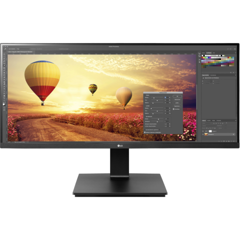 LG 34BR65F-B típusú 34”-es IPS paneles Fekete színű monitor 2560 x 1080 (UW-UXGA) felbontással.