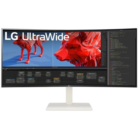 LG 38BR85QC-W típusú 37.5”-es IPS paneles Ezüst színű monitor 3840 x 1600 (WQHD+) felbontással.