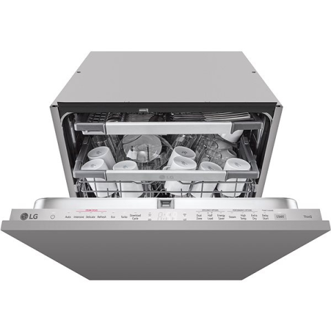 Beépíthető mosogatógép - energiaosztály A, zajszint 43 dB, akár 14 étkészlet ciklusonként (ECO program), gyerekzár és AquaStop, érintéses vezérlés, mosási fázis jelzése és AutoOpen szárítás, evőeszközök elhelyezése fiókba, kijelző és állítható edénykosarak, mérete 81,5 × 59,8 × 55,4 cm (Ma×Sz×Mé), az első díszítőpanel az ajtón nem a kiszerelés része LG DB976TKS beépíthető mosogatógépVértezd fel a háztartásodat a soha véget nem érő harcra