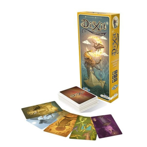 A Dixit kiegészítője: 84 gyönyörű, új kártyával merülhetünk az álmaink mélyére. A Dixit 5 – Álmodozások segítségével a népszerű, Év játéka díjas asszociációs társasjátékot új festményekkel bővíthetjük. A játékhoz szükség van a Dixit vagy a Dixit Odyssey alapdobozra!