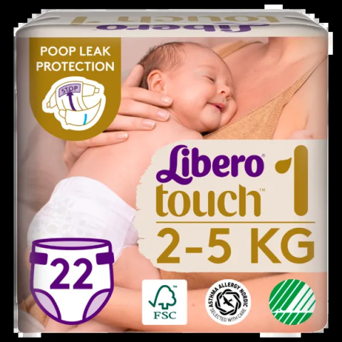 Libero Touch nadrágpelenka 1-es méret (2–5 kg) – 22 db. Rendkívül puha, bőrbarát és kényelmes pelenka újszülöttek számára, természetes anyagokkal. A Libero Touch 1 nadrágpelenka a legfiatalabbak érzékeny bőréhez lett tervezve. A pelenkanadrág extra puh