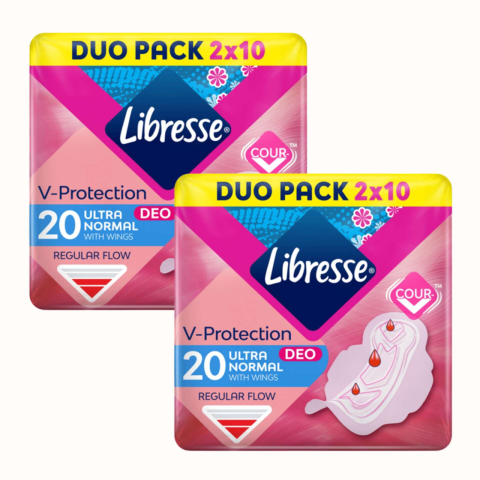 Termék információk Az új Libresse V-protection Ultra+ Deo egészségügyi betéteink szárnyakkal és új Cour-V™ adaptív technológiával biztosítják a számodra szükséges védelmet maximálisan illeszkedő betétünkkel. A gyors nedvszívóképesség és 3 nedvszívó zó...