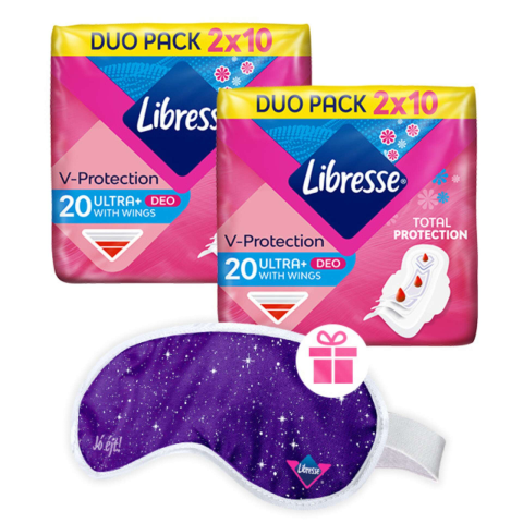1 kép Libresse Ultra+ Deo Fresh normál szárnyas egészségügyi Betét 2x20db + Ajándék Libresse Alvómaszk