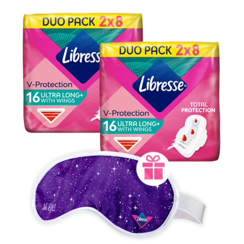 1 kép    Libresse ultra hosszú szárnyas egészségügyi Betét 2x16db + Ajándék Libresse Alvómaszk