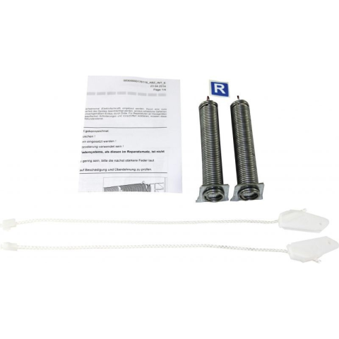 2 x rugós BSH sz. 00627230 piros színkód, 2 x kábel és 1 x szerelési útmutató. Információ Az ajtórugó cseréje: Az ajtórugókat színes pontok jelzik. Ezek a csuklópánt egyik végén lévő 2 fülnél vannak. Megjegyzés: A tényleges színnek nem kell egyeznie a BSH