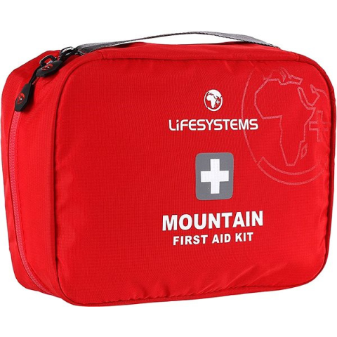 Elsősegélycsomag - outdoor, táska, mosható, tapasz, kötszer, szorító kötés, ragtapasz, olló, kesztyű, használati utasítás, készítmények az égési sérülések kezelésére a csomagban, anyaga ripstop és poliuretán, mérete 14 × 9 × 20 cm (Ma×Sz×Mé), tömege 0,7 kg, piros kivitel A Lifesystems Mountain First Aid Kit egy hegyi túrákra és természetjárásra alkalmas elsősegélycsomag. Mindent biztosít számodra, ami kisebb sérülések és általános sebek ellátás