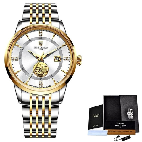 Karóra férfiaknak - analóg idő megjelenítés, óramű típusa quartz, kerek számlap, naptár, elegáns, arab indexek, ásványi számlap, 30 m (3 ATM) vízhatlanság, a tok anyaga acél, a tok színe ezüst és arany, a szíj anyaga acél, a szíj színe ezüst A kiváló minőségű Lige 10050 férfiaknak karóra remek választás a mindennapkora. Az alapját egy 40 mm széles kerek számlap alkotja. Az effektív Quartz technológia hosszú élettartamot és pontos mérést g