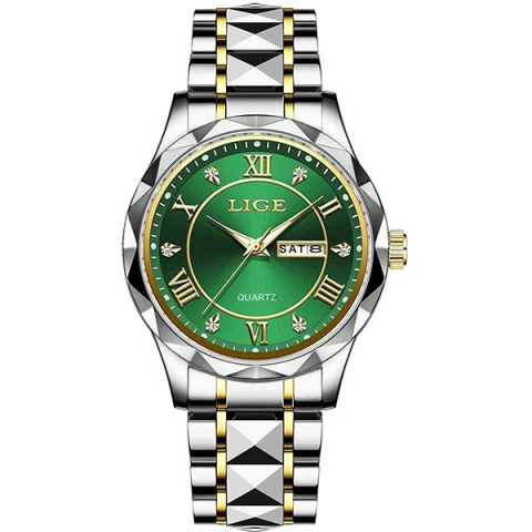 Karóra nőknek - analóg idő megjelenítés, óramű típusa quartz, kerek számlap, elegáns, római indexek, a tok színe zöld, a szíj anyaga rozsdamentes acél, a szíj színe ezüst A kiváló minőségű Lige 89116-8 nőknek karóra jó szolgálatot tesz a mindennapokban. Az effektív Quartz technológia hosszú élettartamot és pontos mérést biztosít. A klassz rozsdamentes acél szíj első pi
