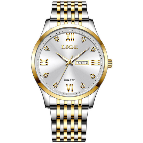Karóra férfiaknak - analóg idő megjelenítés, óramű típusa quartz, kerek számlap, elegáns, római indexek, ásványi számlap, a tok anyaga acél, a tok színe ezüst, a szíj anyaga acél, a szíj színe arany, cserélhető szíjjal A kitűnő Lige 98126 + ajándék férfiaknak karóra nagyszerű viselet hétköznap és ünnepnap is. Az effektív Quartz technológia hosszú élettartamot és precíz időmérést garantál. A klassz acél óraszíj első