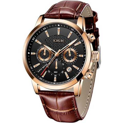 1 kép LIGE férfi karóra - arany/fekete 9866-4*