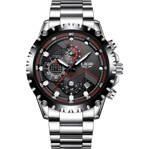 1 kép LIGE férfi karóra - ezüst/fekete 9821-4