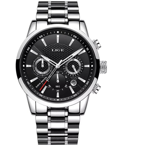 Karóra férfiaknak - analóg idő megjelenítés, óramű típusa quartz, kerek számlap, elegáns, arab indexek, ásványi számlap, 30 m (3 ATM) vízhatlanság, a tok színe fekete, a szíj anyaga acél, a szíj színe ezüst, 22 cm max. csuklóméretre A kiváló minőségű LIGE Glacier fekete férfiaknak karóra jól jön a mindennapok során. A hatékony Quartz technológia rendkívüli megbízhatóságot és hosszú élettartamot garantál. A kiváló minőségű acél sz