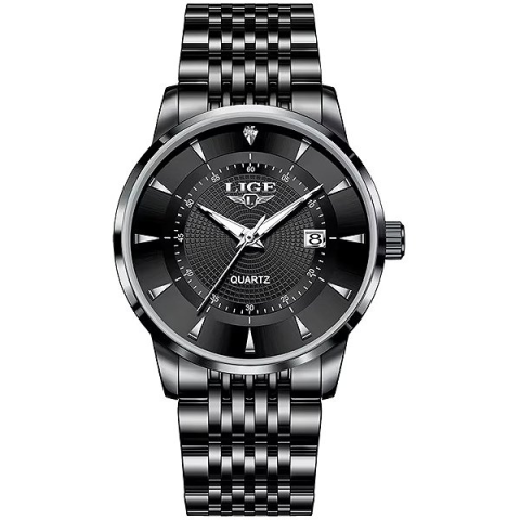 Karóra férfiaknak - analóg idő megjelenítés, óramű típusa quartz, kerek számlap, 12/24 órás formátum és dátum, elegáns, számozás nélküli, ásványi számlap, 30 m (3 ATM) vízhatlanság, a tok anyaga acél, a tok színe fekete, a szíj anyaga acél, a szíj színe fekete, 24 cm max. csuklóméretre A kiváló minőségű LIGE Iron Flame, fekete férfiaknak karóra nagyszerű viselet hétköznap és ünnepnap is. Az évek óta bevált Quartz technológia precíz mérést és h