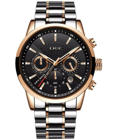Karóra férfiaknak - analóg idő megjelenítés, óramű típusa quartz, kerek számlap, kronográf, elegáns, arab indexek, ásványi számlap, 30 m (3 ATM) vízhatlanság, a szíj anyaga acél, a szíj színe ezüst, 22 cm max. csuklóméretre A klassz LIGE Ironclad fekete férfiaknak karóra remek választás a mindennapkora. Az effektív Quartz technológia rendkívüli megbízhatóságot és hosszú élettartamot garantál. A kitűnő acél szíj első pill