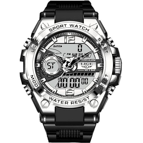 Karóra férfiaknak - kombinált idő megjelenítés, óramű típusa quartz, kerek számlap, ébresztőóra, dátum, naptár és stopper, sportos, arab indexek, 50 m (5 ATM) vízhatlanság, a tok anyaga rozsdamentes acél, a tok színe fekete és ezüst, a szíj anyaga szilikon, a szíj színe fekete A kitűnő LIGE MAN 8922-2 férfiaknak karóra alkalmas mindennapi viseletre. Az alapját egy 43 mm-es kerek számlap képezi. Az effektív Quartz technológia hosszú élettartamot és pontos mér