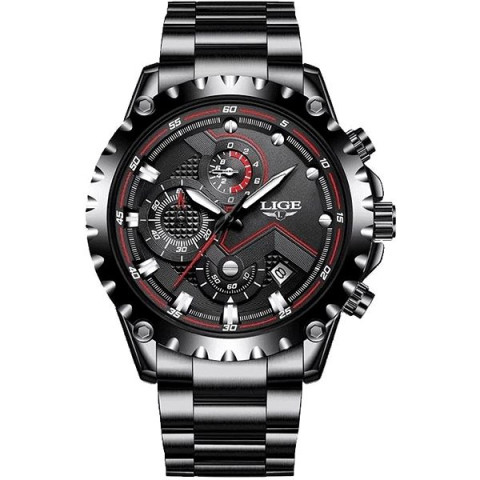 Karóra férfiaknak - analóg idő megjelenítés, óramű típusa quartz, kerek számlap, dátum, fényvisszaverő elemek és stopper, elegáns, arab indexek, ásványi számlap, 30 m (3 ATM) vízhatlanság, a tok anyaga rozsdamentes acél, a tok színe fekete, a szíj anyaga rozsdamentes acél, a szíj színe fekete A kitűnő LIGE MAN 9821-5 férfiaknak karóra alkalmas mindennapi viseletre. Az alapját egy 44 mm szélességű kerek számlap képezi. Az effektív Quartz technológia hosszú