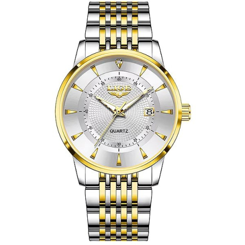 Karóra nőknek - analóg idő megjelenítés, óramű típusa quartz, kerek számlap, 12/24 órás formátum és dátum, elegáns, számozás nélküli, ásványi számlap, 30 m (3 ATM) vízhatlanság, a tok anyaga acél, a tok színe arany, a szíj anyaga acél, a szíj színe ezüst, 24 cm max. csuklóméretre A kiváló minőségű LIGE Sapphire, ezüst nőknek karóra remek választás a mindennapkora. Az évek óta bevált Quartz technológia hosszú élettartamot és precíz időmérést