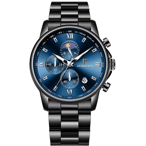 Karóra férfiaknak - analóg idő megjelenítés, óramű típusa quartz, kerek számlap, 12/24 órás formátum, elegáns, római indexek, ásványi számlap, 30 m (3 ATM) vízhatlanság, a tok anyaga acél, a tok színe fekete, a szíj anyaga acél, a szíj színe fekete, 24 cm max. csuklóméretre A nagyszerű LIGE Shadow Rebel, kék férfiaknak karóra jó szolgálatot tesz a mindennapokban. A Quartz technológia rendkívüli megbízhatóságot és hosszú élettartamot biztosít. A klassz