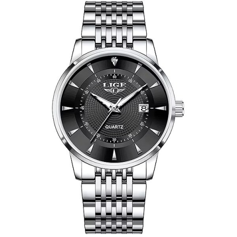 Karóra férfiaknak - analóg idő megjelenítés, óramű típusa quartz, kerek számlap, 12/24 órás formátum és dátum, elegáns, számozás nélküli, ásványi számlap, 30 m (3 ATM) vízhatlanság, a tok anyaga acél, a tok színe ezüst, a szíj anyaga acél, a szíj színe ezüst, 24 cm max. csuklóméretre A kiváló minőségű LIGE Steel Ranger, fekete férfiaknak karóra remek választás a mindennapkora. A Quartz óraszerkezet hosszú élettartamot és pontos mérést garantál.