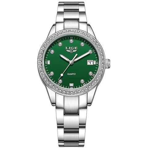 Karóra nőknek - analóg idő megjelenítés, óramű típusa quartz, kerek számlap, elegáns, számozás nélküli, ásványi számlap, 30 m (3 ATM) vízhatlanság, a tok színe zöld, a szíj anyaga acél, a szíj színe ezüst, 22 cm max. csuklóméretre A kiváló minőségű LIGE Tempete zöld nőknek karóra nagyszerű viselet hétköznap és ünnepnap is. Az évek óta bevált Quartz technológia hosszú élettartamot és pontos mérést garantál. A minőségi acél szíj
