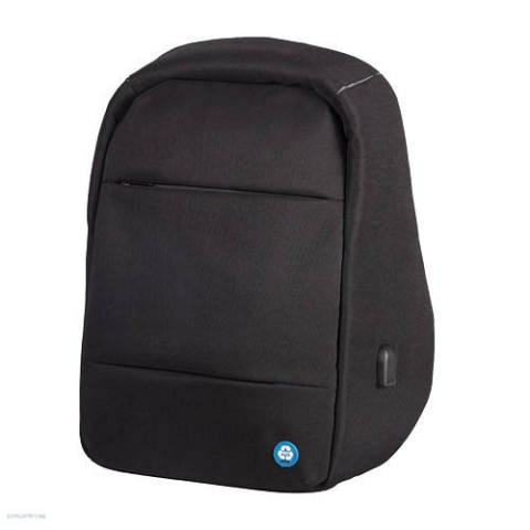 Újrahasznosított PET-ből készült USB töltőporttal ellátott notebook hátizsák, vállpánton cipzáras rekesszel. Cipzáras párnázott fő rekesze notebookhoz és tabletekhez. Ezenkívül található rajta három kisebb zseb és cipzáras rekesz. .