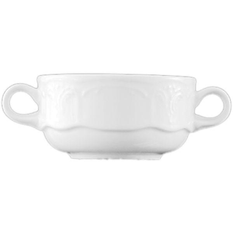 6 darabos készlet fehér, egymásra helyezhető Lilien Bellevue porcelán leveses tálkából, 0,3 l űrtartalommal. Kiegészíthető a 221156107 számú alátéttel. A tálkák kerekek, átmérőjük 107 mm és magasságuk 55 mm. Ideális levesek és egyéb ételek tálalására.