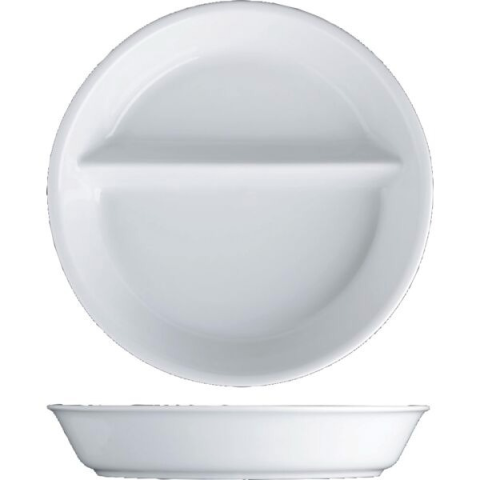 A Lilien System osztrák márkájú, fehér, sekély porcelántányér 2 rekesszel és 21,5 cm átmérővel ideális a mindennapi használathoz. A tányér kórházi intézményekben is alkalmas. Minőségi porcelánból készült.