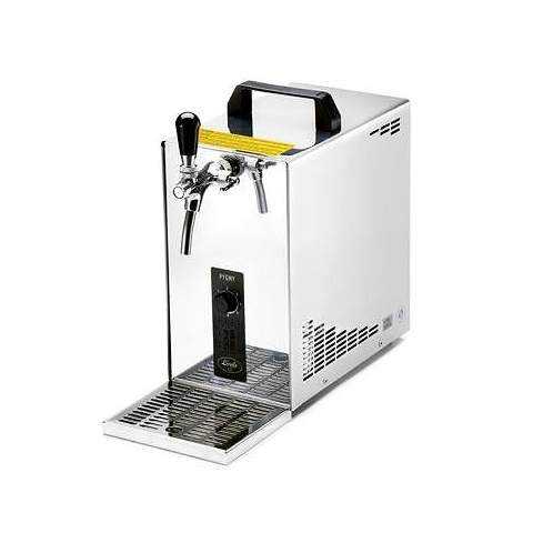 Házi sörcsapoló - kompresszoros, hűtéssel, használható KEG hordókkal, szivattyú teljesítménye 25 l/h, 322 W energiafelhasználás, edény szárító a csomag része, állítható nyomás, 1 csap, 1 fajta hűtött italhoz, kompresszor nyomása 3,2 bar, hűtőközeg típusa R290, termikus gradiens 10 °C, mérete 32,5 × 18,5 × 31,5 cm (Ma×Sz×H), tömege 16,5 kg Olyan csapolóberendezést keresel, amely kompakt, mégis megfelel minden elvárásodnak? A PYGMY 20/K Green Line new az eg