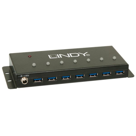 LINDY USB 3.0, 7 port, fém kialakítású hub (43128) (43128)
