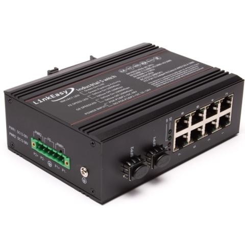 Ipari PoE switch - 2 darab Gigabites SFP port - 8 darab Gigabites LAN port - 802.3at - Duál DC bemenet - DIN sínre szerelhető - -40°C ~ +85°C