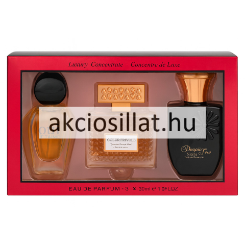 A Linn Young Luxury Concentrate parfüm ajándékcsomag 3x30ml egy különleges válogatás, amely három ikonikus illatvilágot kínál egy elegáns szettben. Ez a kollekció azoknak a nőknek szól, akik szeretik a változatosságot, a luxusérzetet és a kifinomult illat