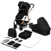 Babakocsi 2in1 - városba és terepre, mély, sport kosár, felfújható forgó kerekek fékezőrendszerrel, magas szülőknek, ötpontos biztonsági öv, mindkét irányú ültetés, állítható lábtartó és háttámla, tolókar max. magassága 113 cm, kosár hossza 83 cm, gyerek max. tömege 22 kg, mérete (összecsukva) 33 × 61 × 82 cm (Ma×Sz×H), babakocsi váza, mózeskosár, sportülés, lábzsák, esővédő és babakocsi táska a csomag része, külön megvásárolható autósülé
