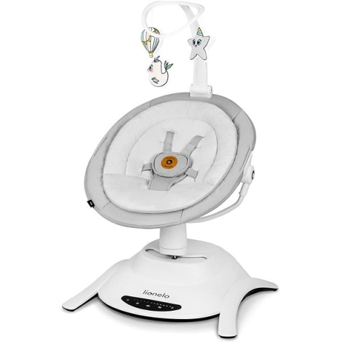 Pihenőszék - hintamechanikával, max. teherbírás 9 kg, mozgásérzékelő, mosható huzat, pozicionálható, csúszásgátló talpak, ajánlott újszülött kortól, automatikus hintamechanika, levehető huzat és újszülött betét a csomag része, becsatolás módja 5-pontos biztonsági öv, 3 pozíció, szürke kivitel, mérete 96 × 65 × 70 cm (Ma×Sz×Mé), tömege 5,5 kg, fém váz A praktikus Lionelo pihenőszék biztonságos választás, amelyben kisbabád lefeküdhet, pihenhet, j