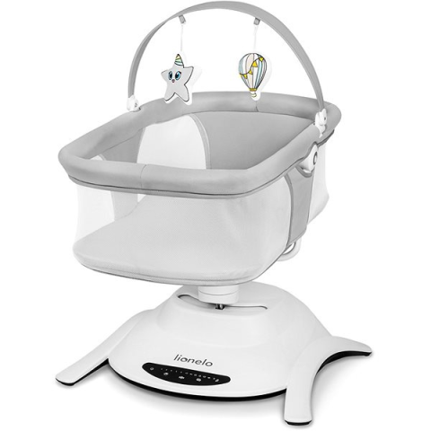 Pihenőszék - hintamechanikával, max. teherbírás 9 kg, mozgásérzékelő, mosható huzat, pozicionálható, csúszásgátló talpak, ajánlott újszülött kortól, automatikus hintamechanika, levehető huzat és újszülött betét a csomag része, becsatolás módja 5-pontos biztonsági öv, 3 pozíció, szürke kivitel, mérete 96 × 65 × 70 cm (Ma×Sz×Mé), tömege 5,5 kg, fém váz A neves Lionelo pihenőszék biztonságos helyet kínál a pihenéshez, a játékhoz és a környezet m