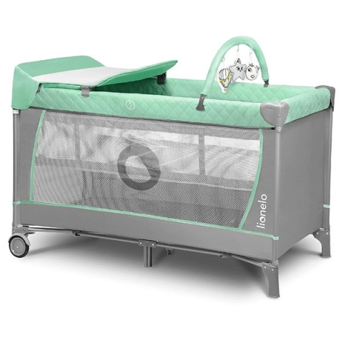 Utazóágy - gyerekeknek, pelenkázó pulttal, pozicionálható, 15 kg terhelhetőség, szögletes forma, hordtáskával, függőággyal, összecsukódásgátló rendszer, összecsukható, fém szerkezet, a huzat anyaga poliészter, méretei 77 × 60 × 120 cm (ma × szé × h), tömege 8 kg, kék kivitel A jól átgondolt Lionelo utazóágy négyzetes formája kellemes helyet biztosít gyermekednek a pihenésre. Összehajtható és tárolható a csomagban található praktikus utazótáskában,